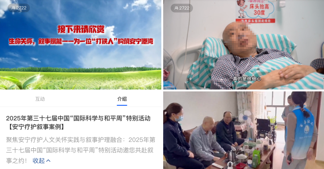 在生命的旅程中,安宁疗护宛如一盏温暖的明灯,为那些在病痛与困境中挣扎的人们照亮前行的道路。当南京航天医院与百善社工团队相遇,他们携手开启了一场充满爱与希望的探索之旅,共同打造出参赛作品《为一位“打铁人”构筑安宁港湾》。这个作品,如同一股清泉,流淌进人们的心田,以其细腻的情感、专业的服务,为一位饱经生活磨砺的“打铁人”构筑起了一个安宁的港湾。如今,它凭借着这份独特的魅力与价值,在 2025 年第三十七届中国“国际科学与和平周”特别活动【安宁疗护叙事案例】评选中脱颖而出,荣获优秀案例称号,让我们一同走进这个温暖的故事,感受安宁疗护的力量。