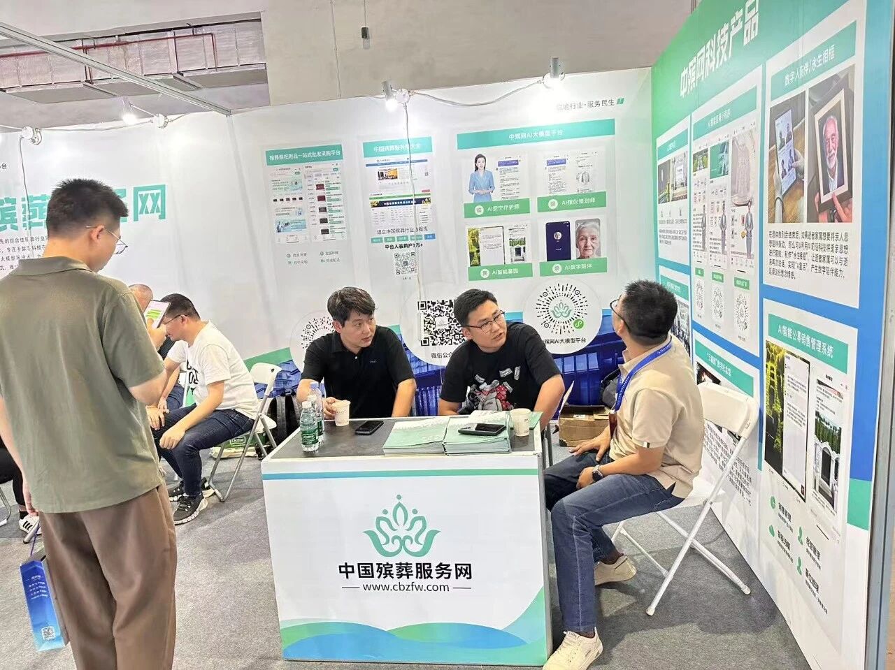 中国殡葬服务网平台负责人陈松,在发布会现场介绍了全平台科技产品,其中包括殡葬行业首个殡葬ai大模型平台,得到了现场听众的广泛关注。中国殡葬服务网在此次博览会设置了展位,吸引了大批观众,最吸引的就属科技产品,数字礼厅、AI智能小程序、数字人陪伴、AI数字讲解员、“云墓”园数字纪念、AI智能公墓管理销售系统等。同时大家对于中国殡葬服务网也有了更深,更全面的了解,现场就有多家殡葬企业提出了合作意向。