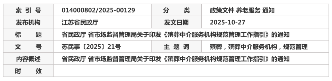 为规范殡葬中介服务行为,维护殡葬服务市场秩序,促进殡葬行业健康有序发展,切实保障群众合法权益,依据国务院《殡葬管理条例》及有关法律法规政策规定,结合工作实际,制定本指引。本指引适用于在中华人民共和国境内依法设立,在江苏省行政区域内为治丧委托人提供殡葬信息咨询、殡仪服务代理、丧葬用品销售等中介服务的机构(以下简称“殡葬中介服务机构”)及其从业人员。