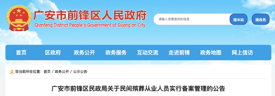 为规范殡葬服务市场秩序,加强行业监管,提升殡葬服务质量,维护人民群众合法权益,根据《殡葬管理条例》(国务院令第824号)等有关规定,结合前锋实际,现对全区民间殡葬从业人员实行备案管理制度。有关事项公告如下: