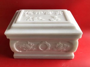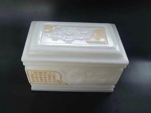 2、骨灰盒产品采用优质天然玉石材料.色泽纯净,做工精细,质量上乘,采用传统中国元素,颇具中华传统历史文化蕴味.在市场竞争中民族的东西是最前沿,最富内涵的,因而是永恒的,长久的.