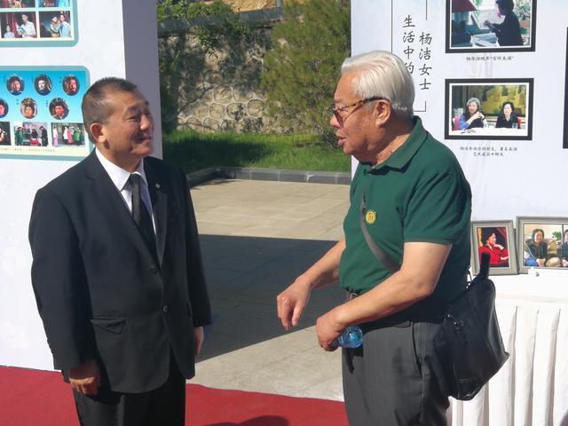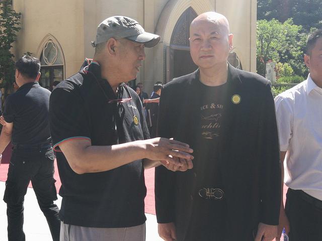 《西游记》中如来的扮演者朱龙广(右)与泰康健投高级副总裁兼首席纪念园执行官陈平先生(左)